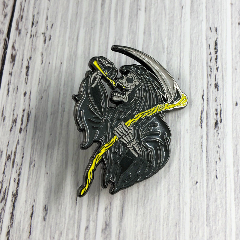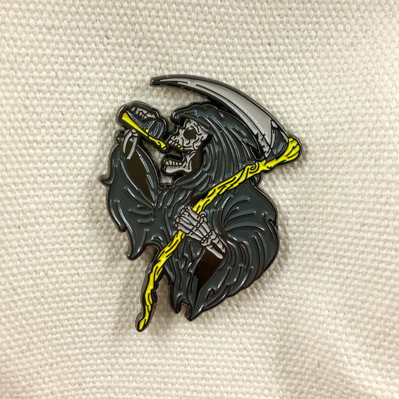 Scythe Grim Reaper Halloween Skull Punk Pin
