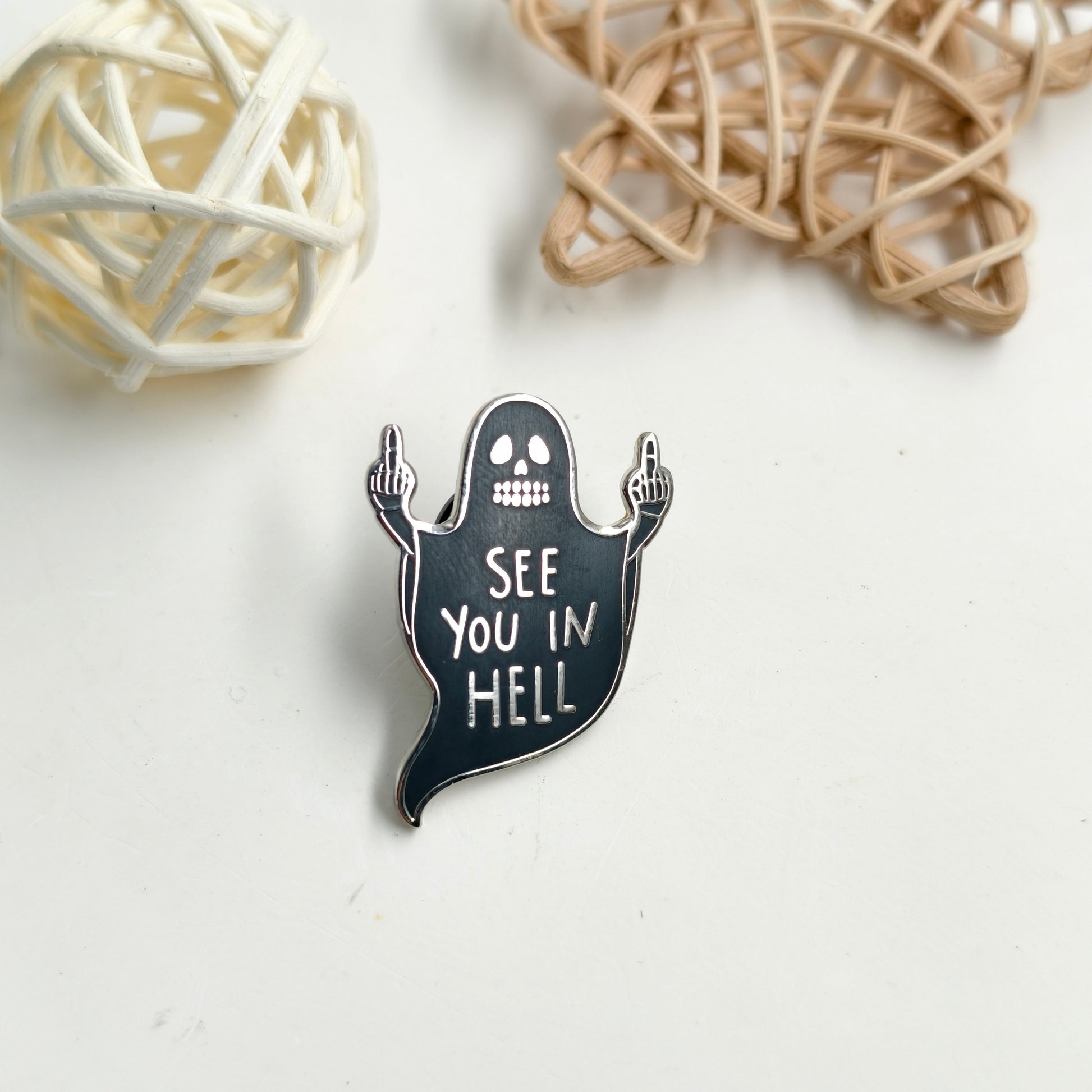 See You In Hell Black Ghost Pin